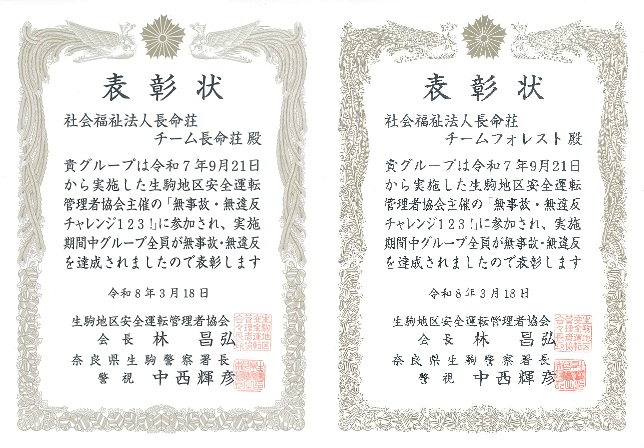 「無事故・無違反チャレンジ123!」は、生駒地区安全運転管理者協会様が主催する取り組みで、令和7年9月21日から令和8年1月21日までの期間、1チーム5名で無事故・無違反の達成を目指すものです。